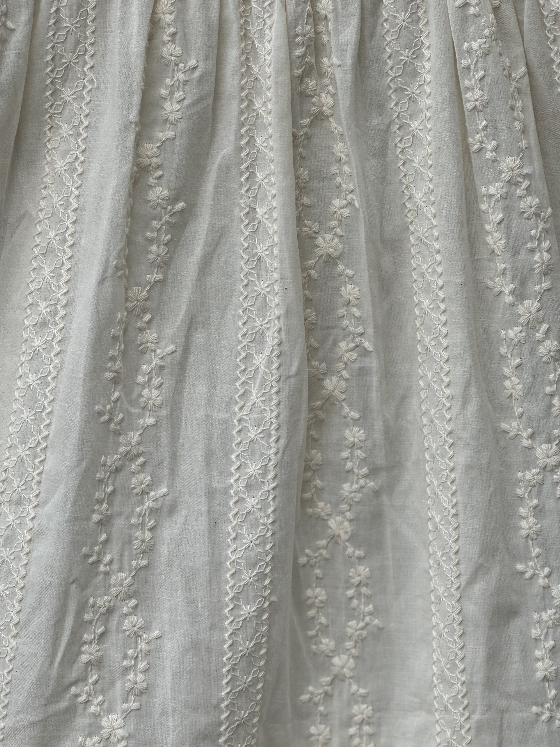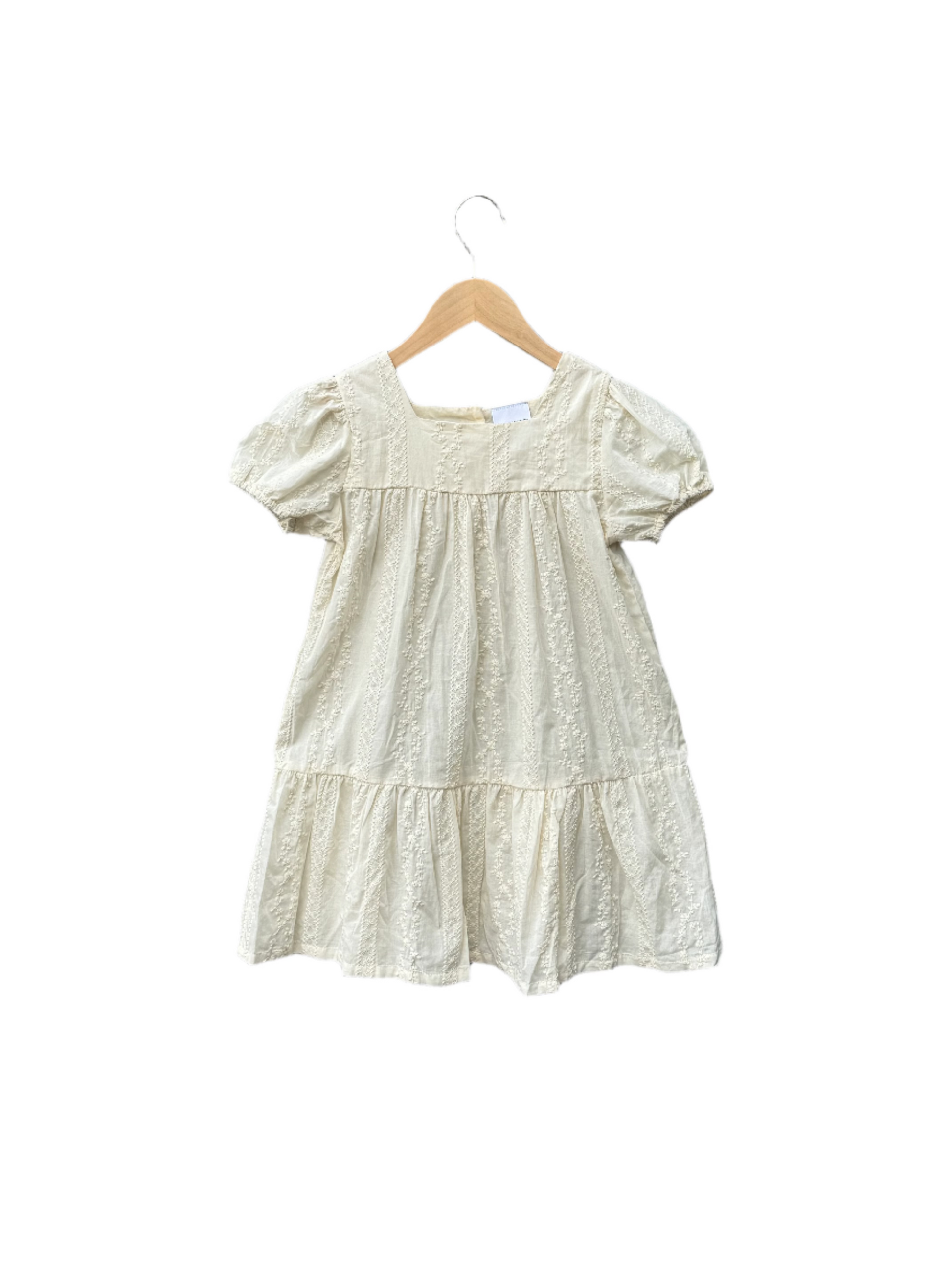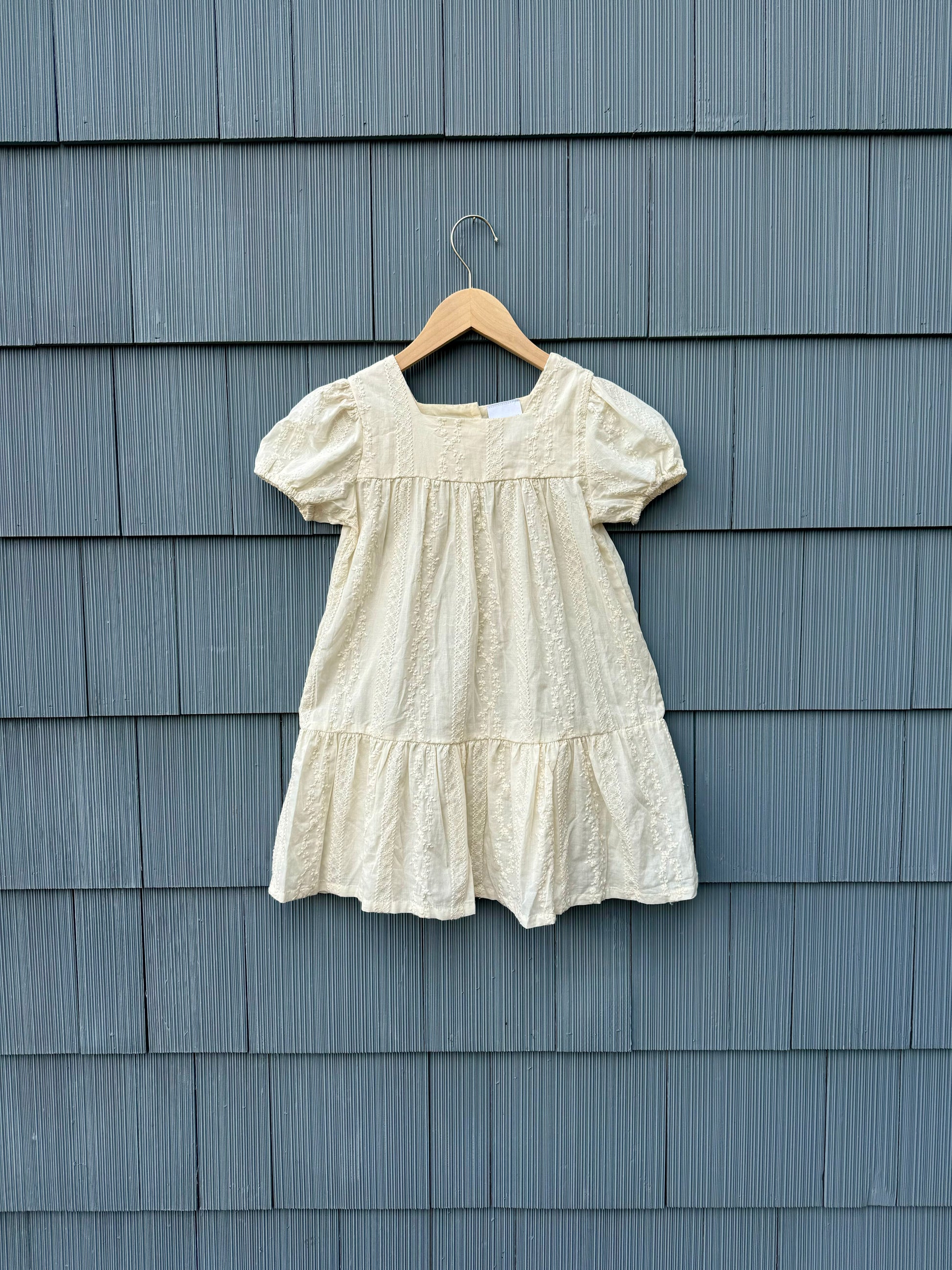 100% cotton and embroidered with the sweetest little flower vines, this neutral dress will be a staple in every child's wardrobe.