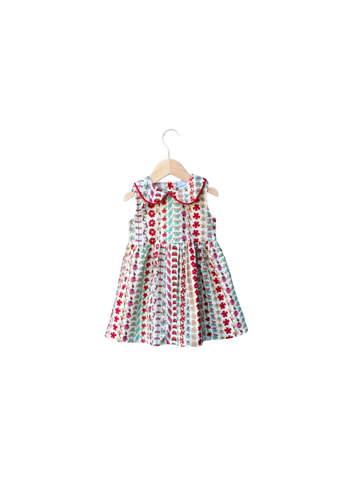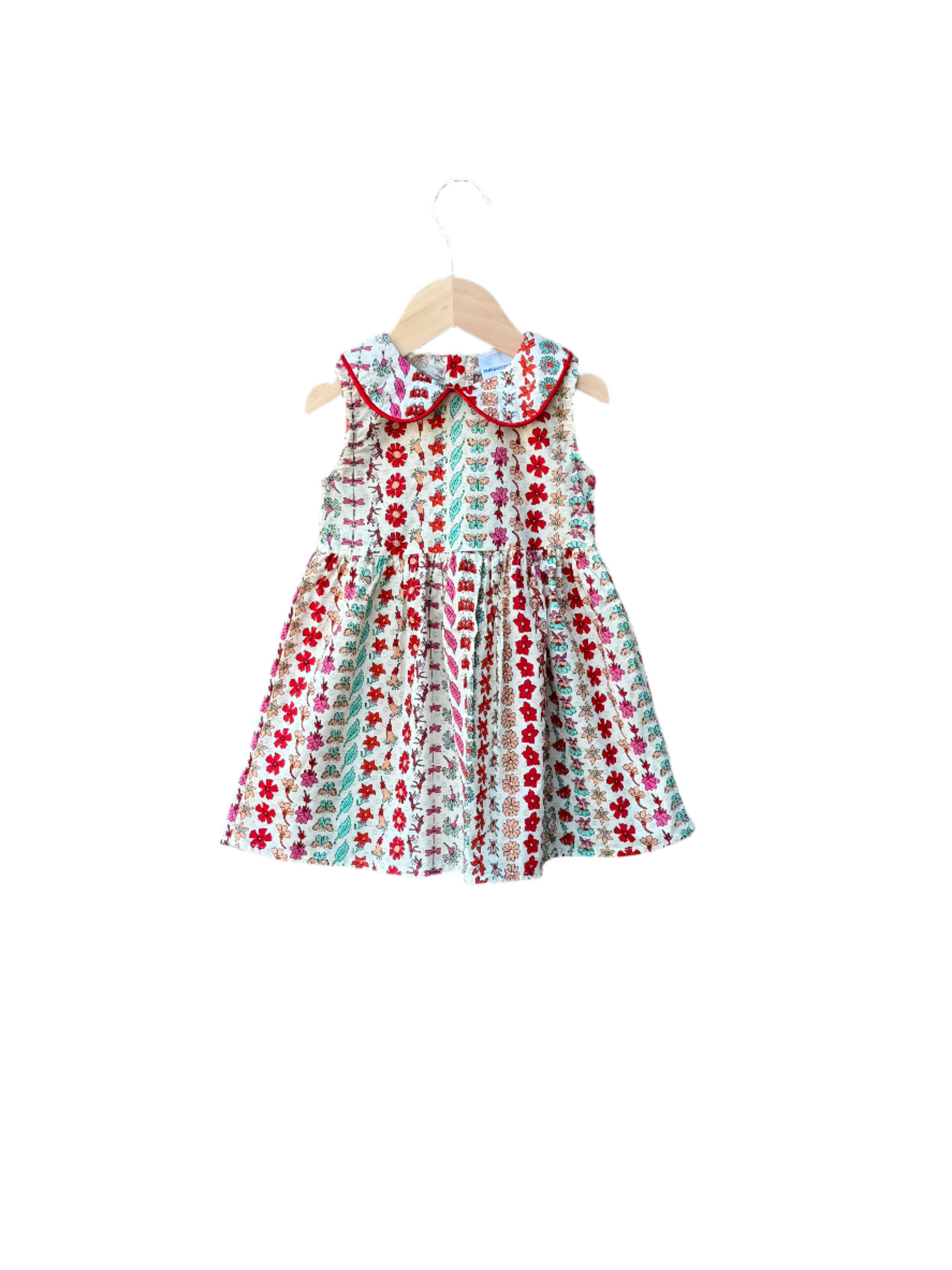 She will steal the show in this sweet vintage inspired, flower and insect patterned dress! Lightweight and twirly, with a classic traditional Peter Pan collar.