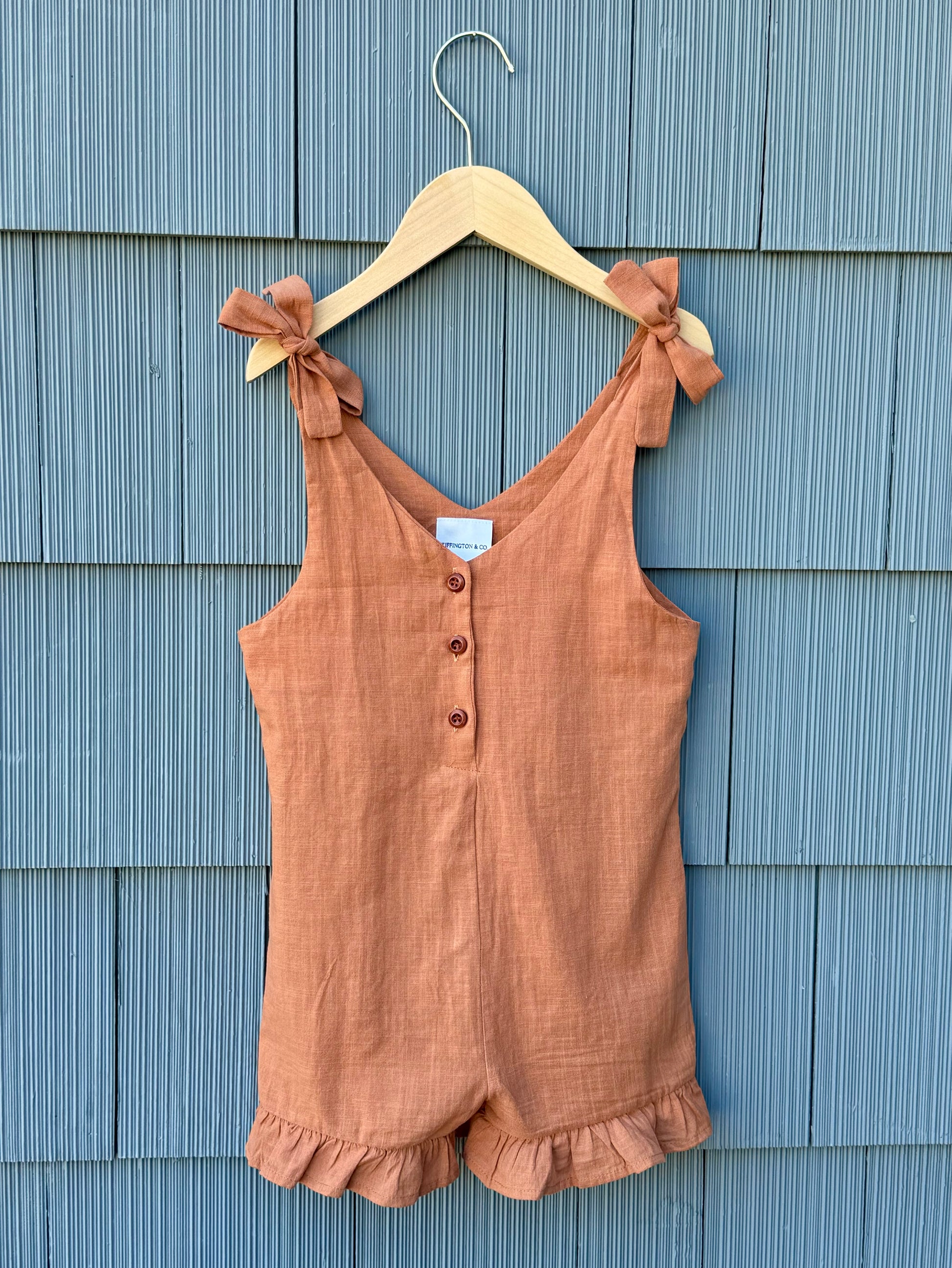 This darling romper is lightweight and soft- comfy enough to play in and adds that extra dash of elevated charm to your littles wardrobe.